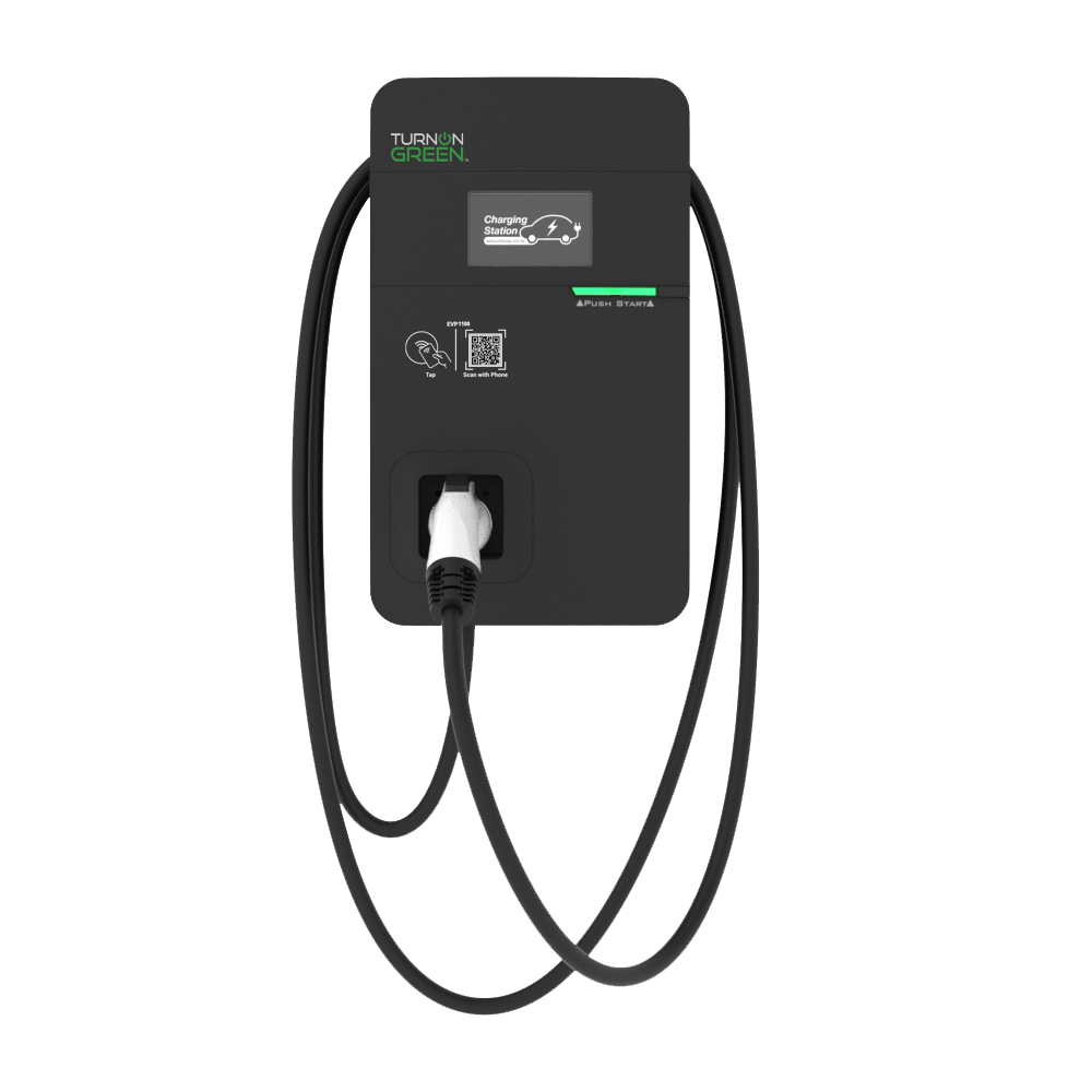 TurnOnGreen EVP1100 is a 48A max level 2 EV charger. Energy star certified, rebate eligible, with adjustable power settings, the EVP1100 Level 2 EV charger is ideal for hotels, fleets, multifamily properties, workplaces, commercial retail and even home use.