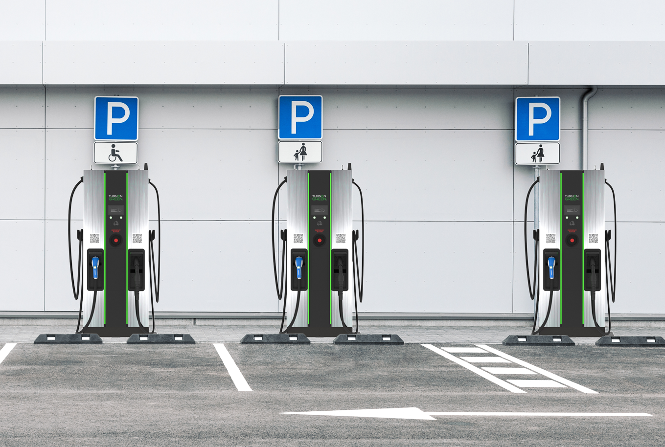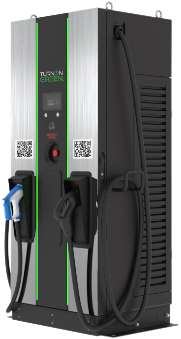 The TurnOnGeen FSP Series are free standing 90-180kW DC fast chargers that are simple to install, operate, and maintain. With a small footprint, these units are designed to efficiently recharge an EV in minutes. The user-friendly interface and compatibility with a majority of EV models make it a versatile choice for destination and fleet charging.